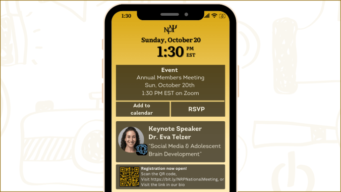 The annual Nu Rho Psi National Meeting will be held on October 20, 2024 from 1:30 – 3:00 PM EST on Zoom. We have an excellent keynote speaker that fits our overall theme of “Social Media and the Brain”: Dr. Eva H. Telzer, Professor of Psychology and Neuroscience at UNC Chapel Hill and Director of the Developmental Social Neuroscience Lab. (https://dsnlab.web.unc.edu/). The title of her keynote address is: Social Media and Adolescent Brain Development. At the meeting we will also announce award winners, election results, and upcoming initiatives that will be of value to you and your members.