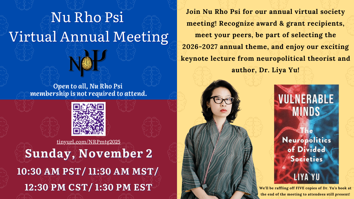 Join Nu Rho Psi for our annual virtual society meeting on November 2, 2025 at 1:30 PM Eastern!