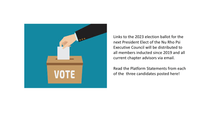 Ballots have been distributed via email to all current chapter advisors and the student members inducted between 2019 and 2023. This year we are holding elections for the next President of the Nu Rho Psi Council. This election is for a three-year term: Year 1 – 2024-25 : President Elect Year 2 – 2026-27: President...