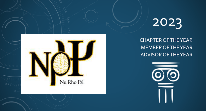 ___________________________________________ Congratulations!! Nu Rho Psi Chapter of the Year Indiana University – Bloomington (γIN) Nu Rho Psi Student Member of the Year Bridget Armstrong (δPA-96) – Temple University Nu Rho Psi Faculty Member of the Year Lorenz Neurwith (εNY-1) – SUNY Old Westbury ___________________________________________